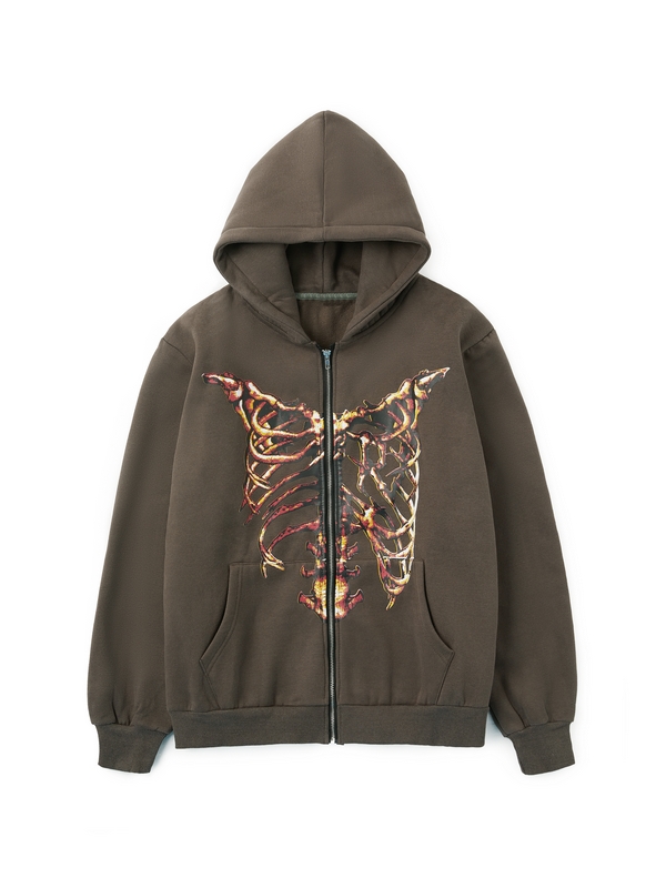 Sudadera con capucha extragrande con cremallera y estampado para hombre