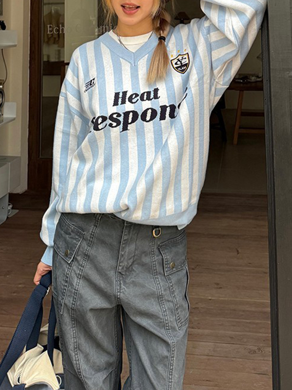 Suéter retro americano de rayas con cuello en V