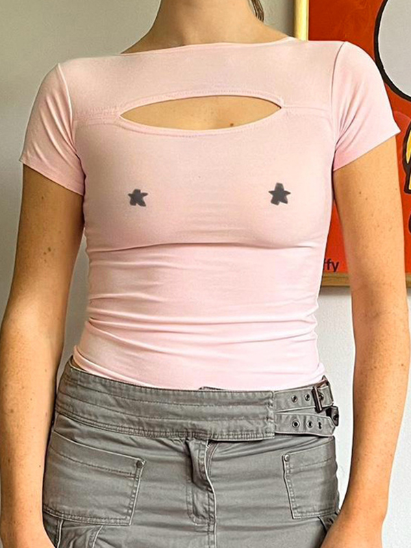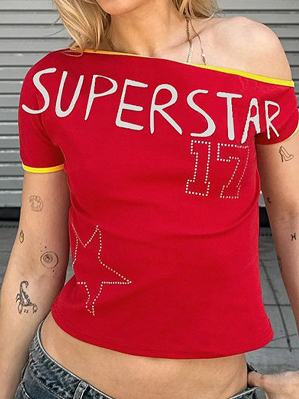 Camiseta de manga corta con estampado de letras cruzadas y mangas abullonadas