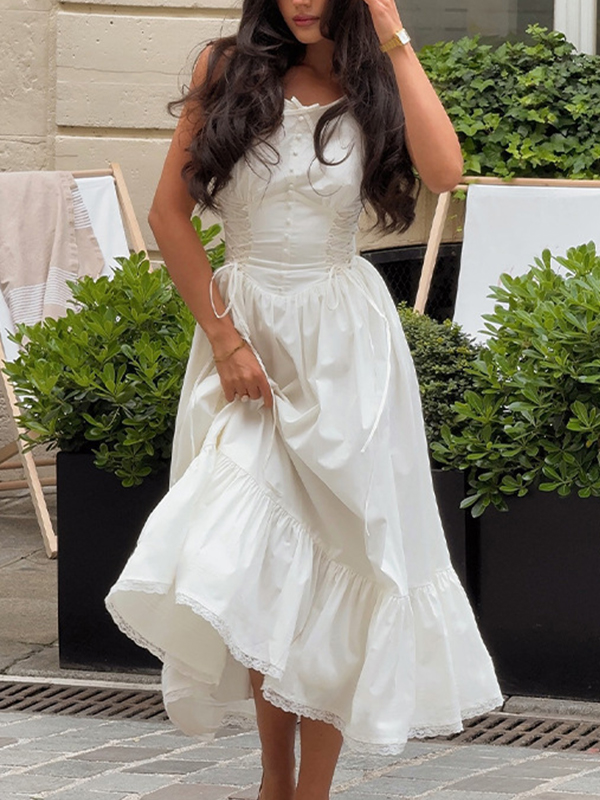 Vestido largo rústico con lazo en la parte delantera