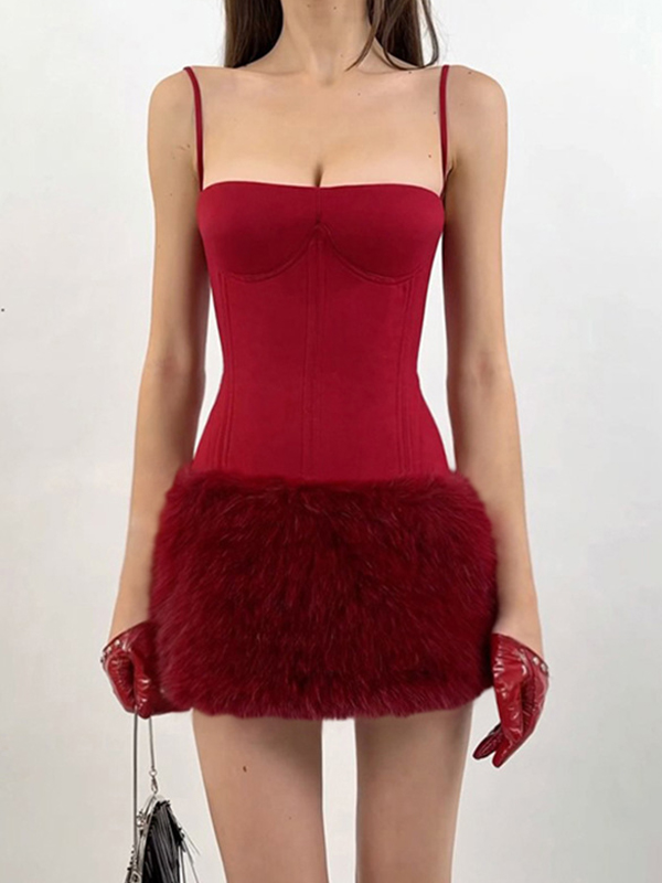 Minivestido sexy de tirantes con espiga de pescado