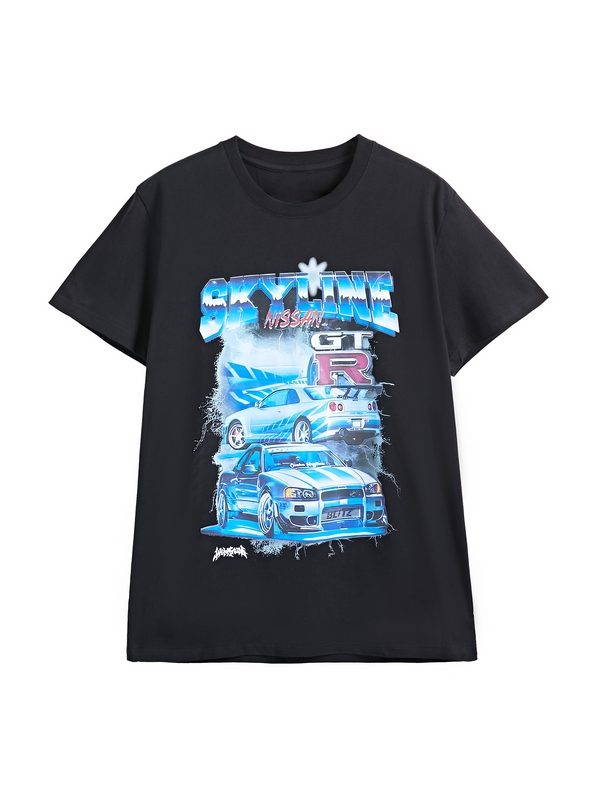 Camiseta extragrande de manga corta con estampado retro para hombre