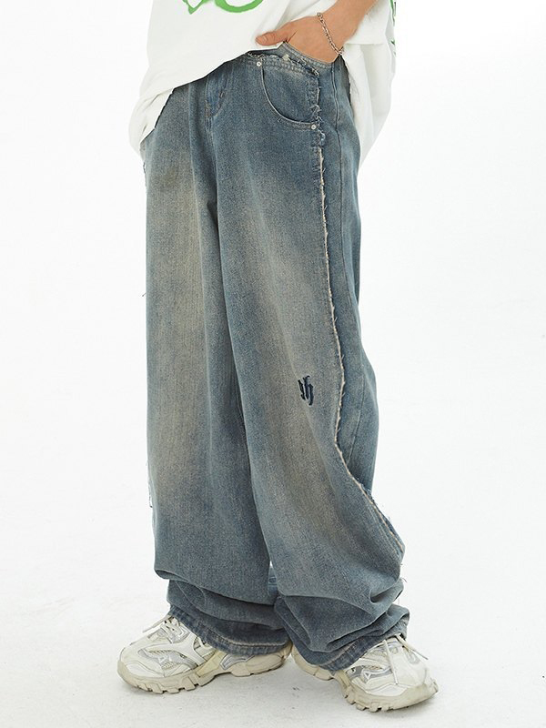 Vaqueros holgados desgastados con parches descoloridos para hombre