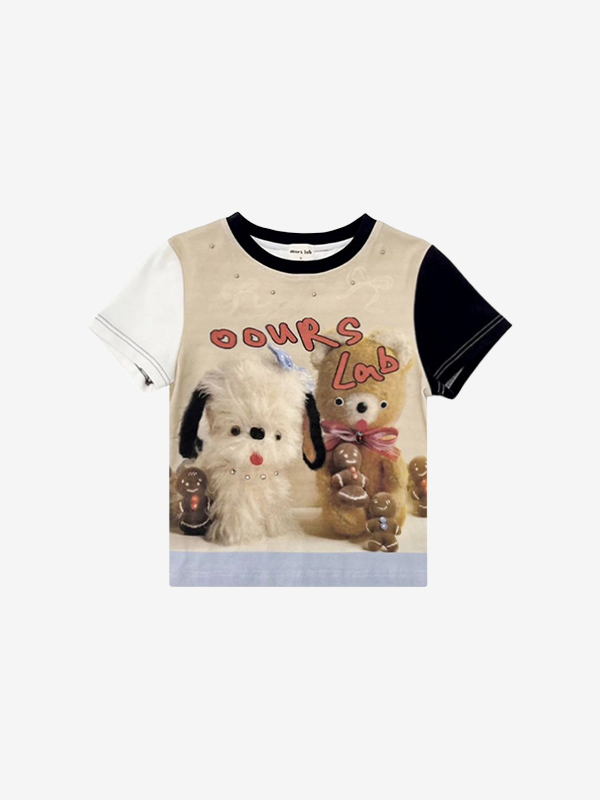 Camiseta de manga corta con estampado de gato chocante