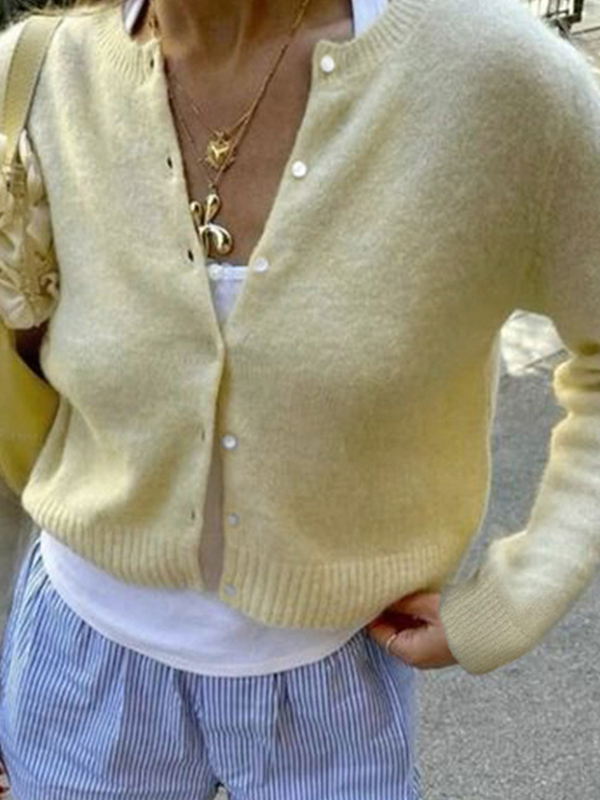 Cárdigan informal versátil de color liso con botones