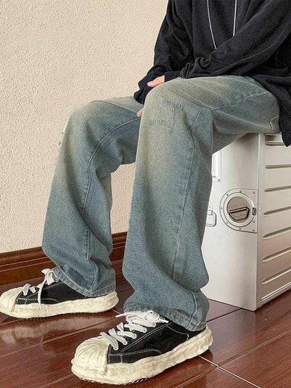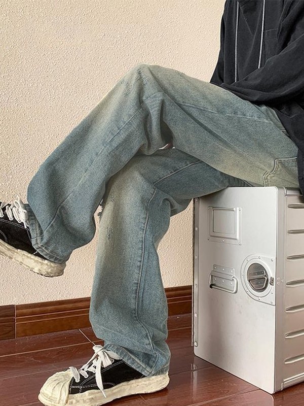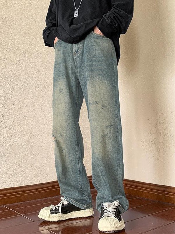 Jeans sueltos de mezclilla desgastada vintage para hombre
