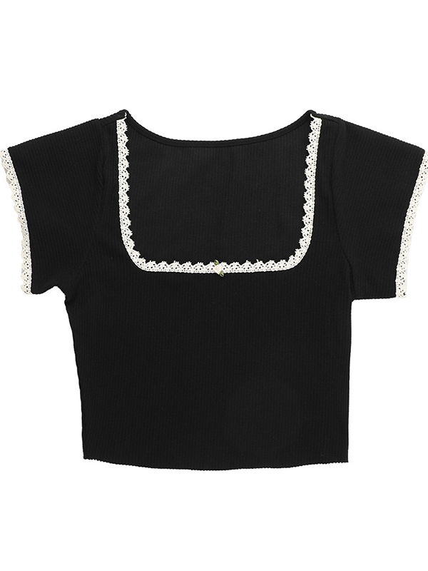 Jersey de punto de manga corta con encaje contrastante
