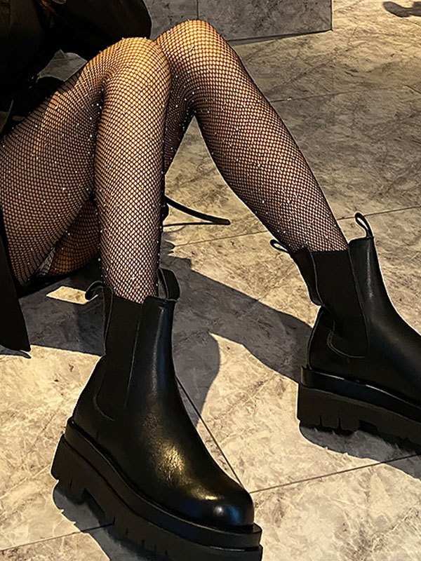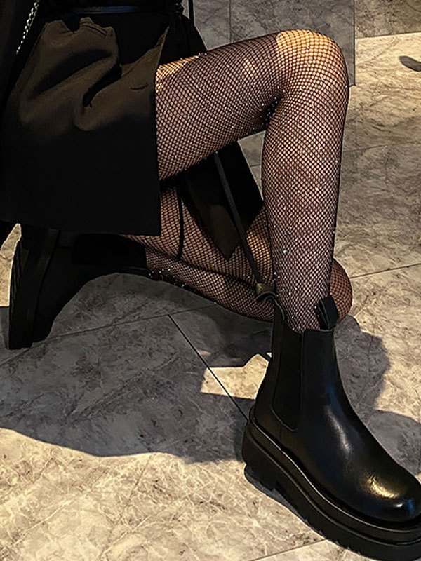 Medias de rejilla con decoración de diamantes de imitación