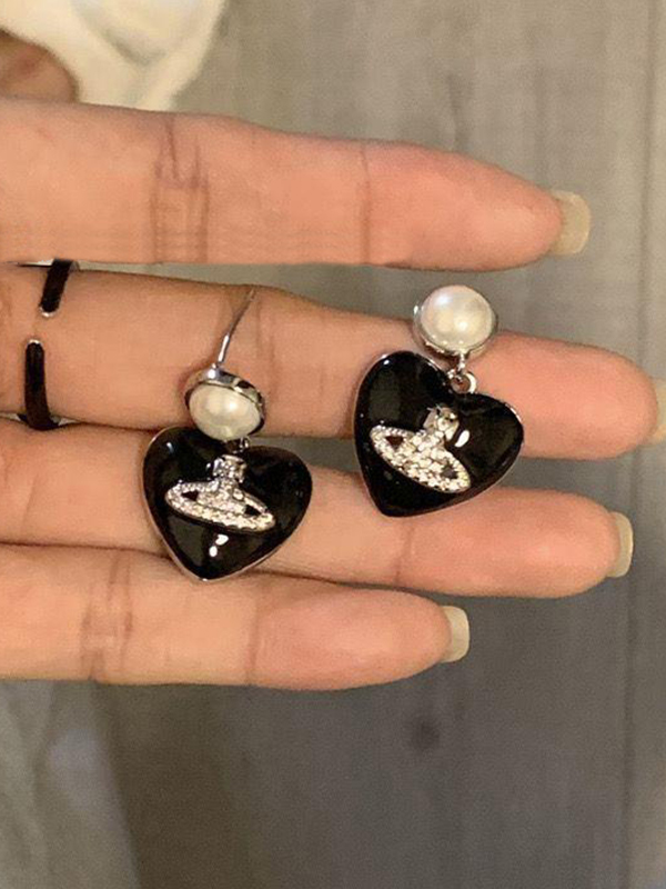 Sé el primero en valorar “Pendiente de botón con diamantes grabados de Saturno en forma de corazón negro”