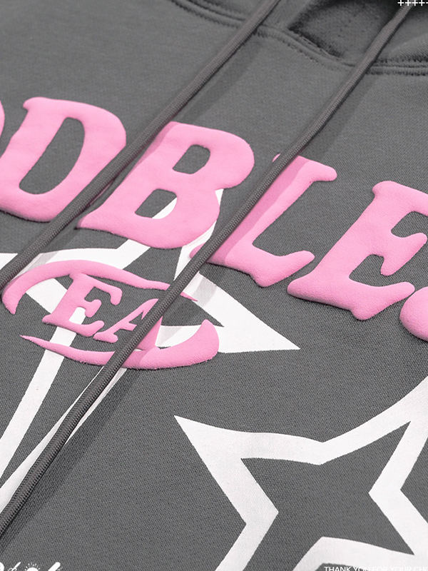 Diseño único: La sudadera con capucha presenta un estampado de estrellas y letras de colores en contraste, lo que le da un aire vintage y urbano.
